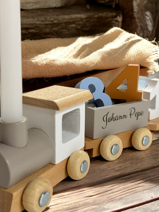 bunter Geburtstagszug mit. Kerze
